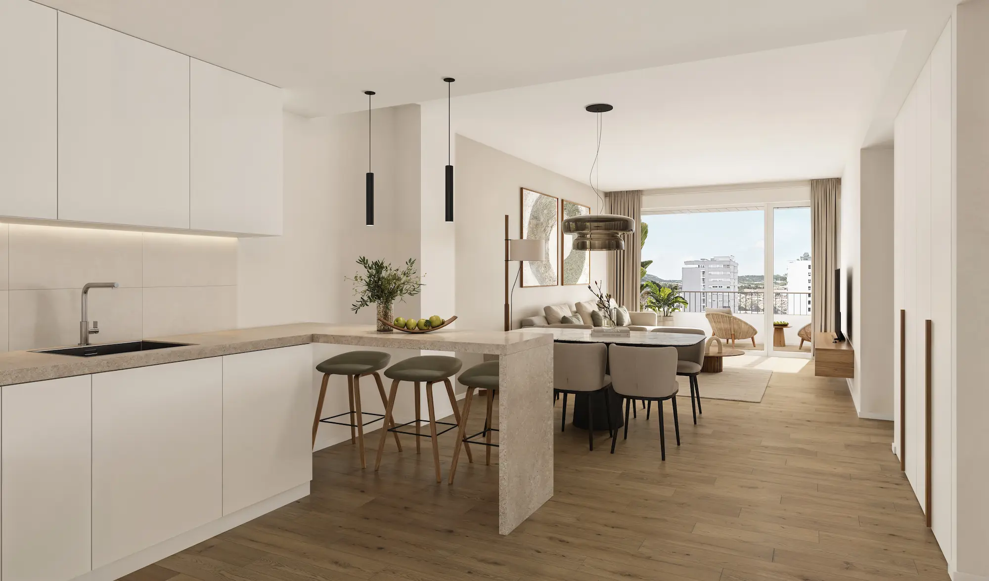TOMAS DE TV, TELEFONÍA Y DATOS en salas y en dormitorios, cocina y salón.
